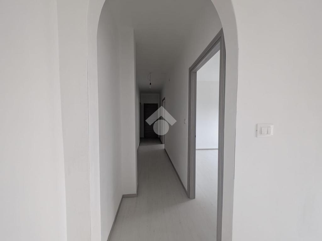 È così disposto: ingresso su cucina e sala da pranzo, entrambe con balcone, tramite un corridoio si accede alle due camere da letto matrimoniali, al bagno di ottima metratura ed allo sgabuzzino.