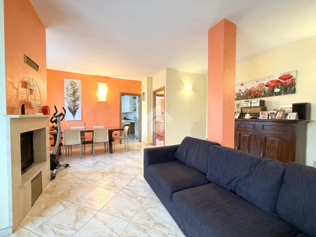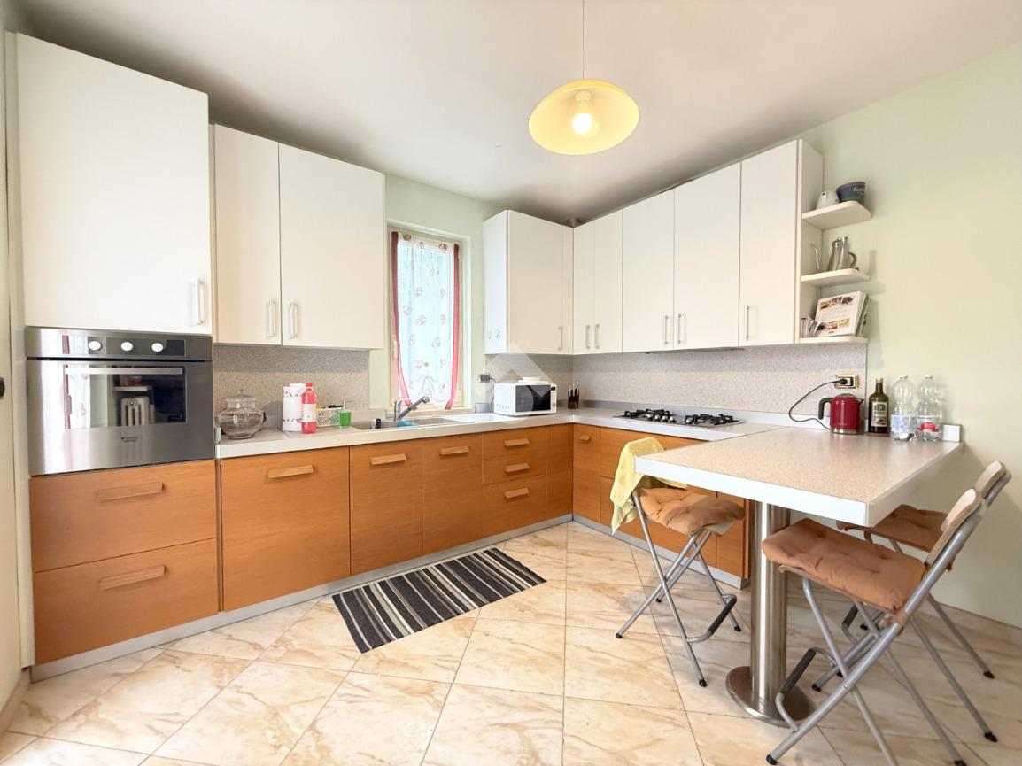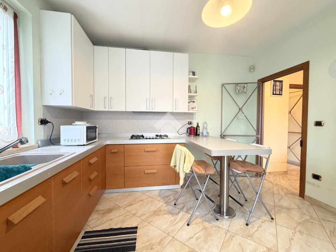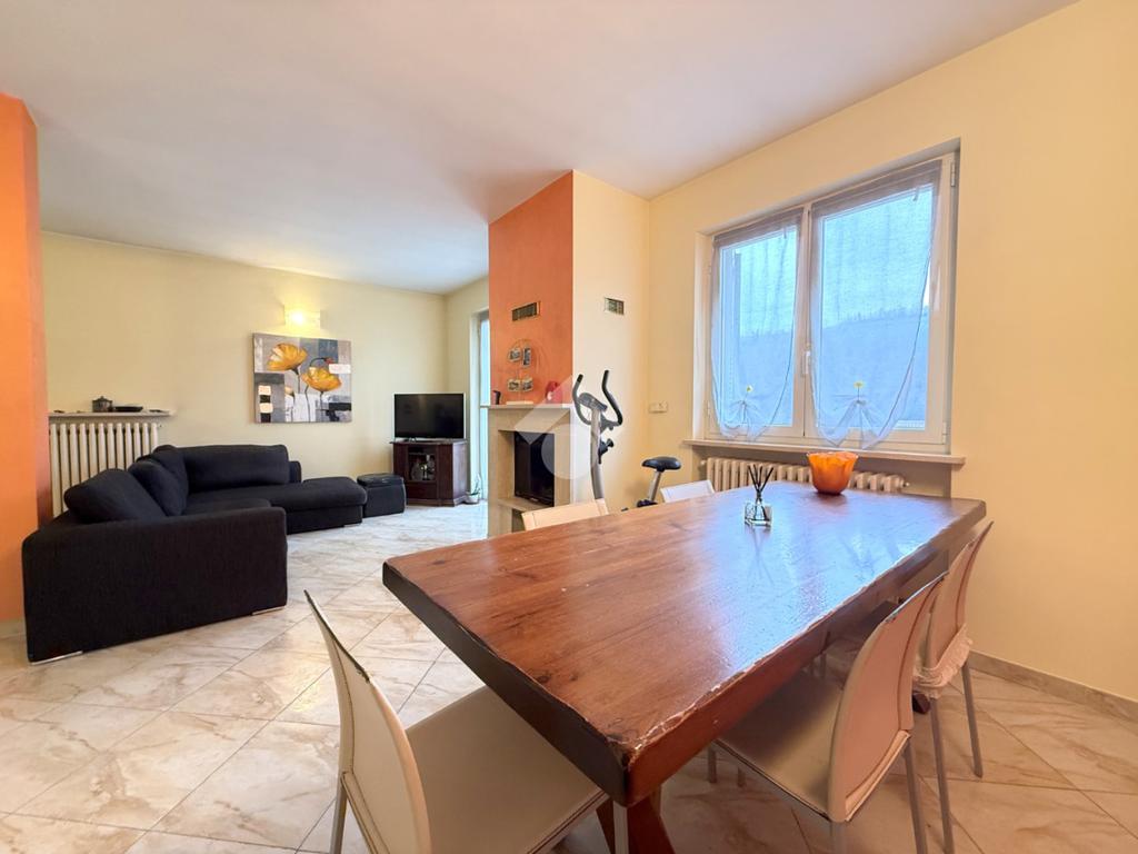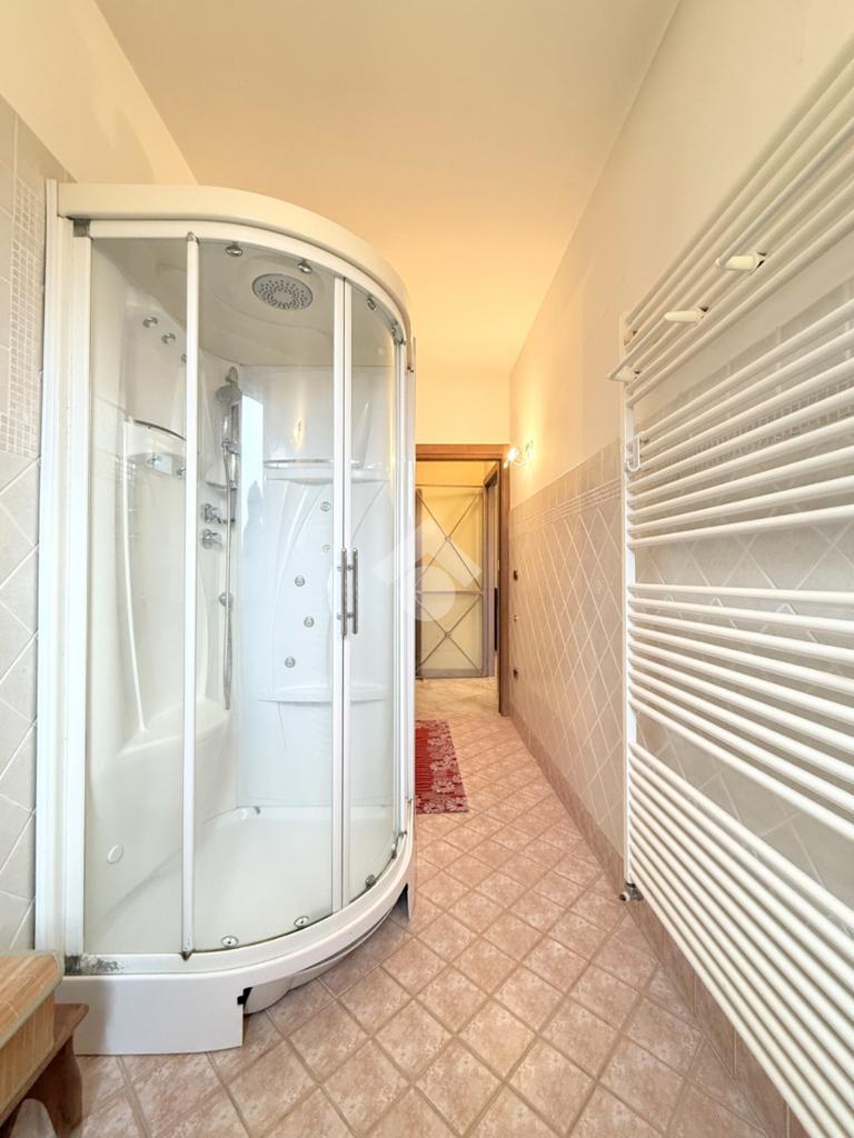 Al piano abitativo troviamo un ampio soggiorno con camino e terrazzo, la cucina abitabile e due camere da letto, di cui una matrimoniale con affaccio su un terrazzo coperto che porta al giardino. Il bagno spazioso ha una doccia multifunzione.