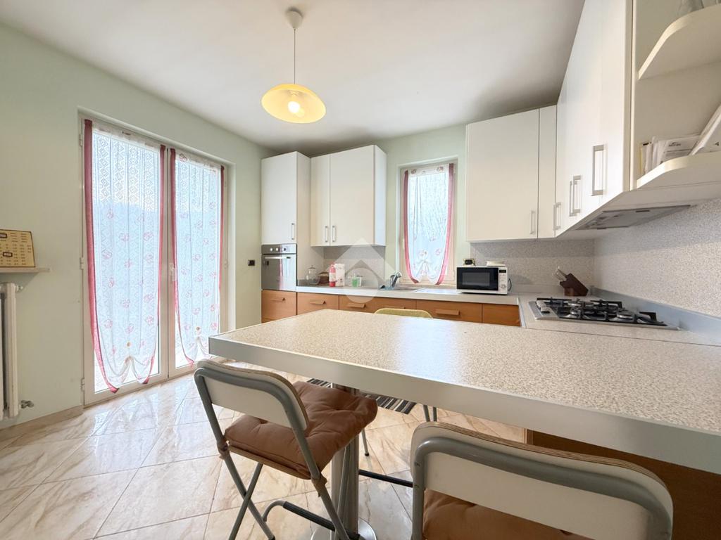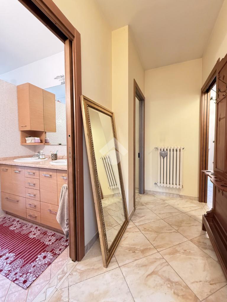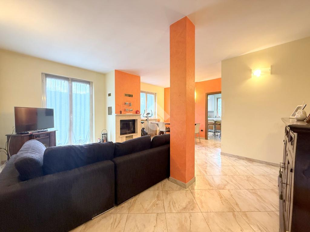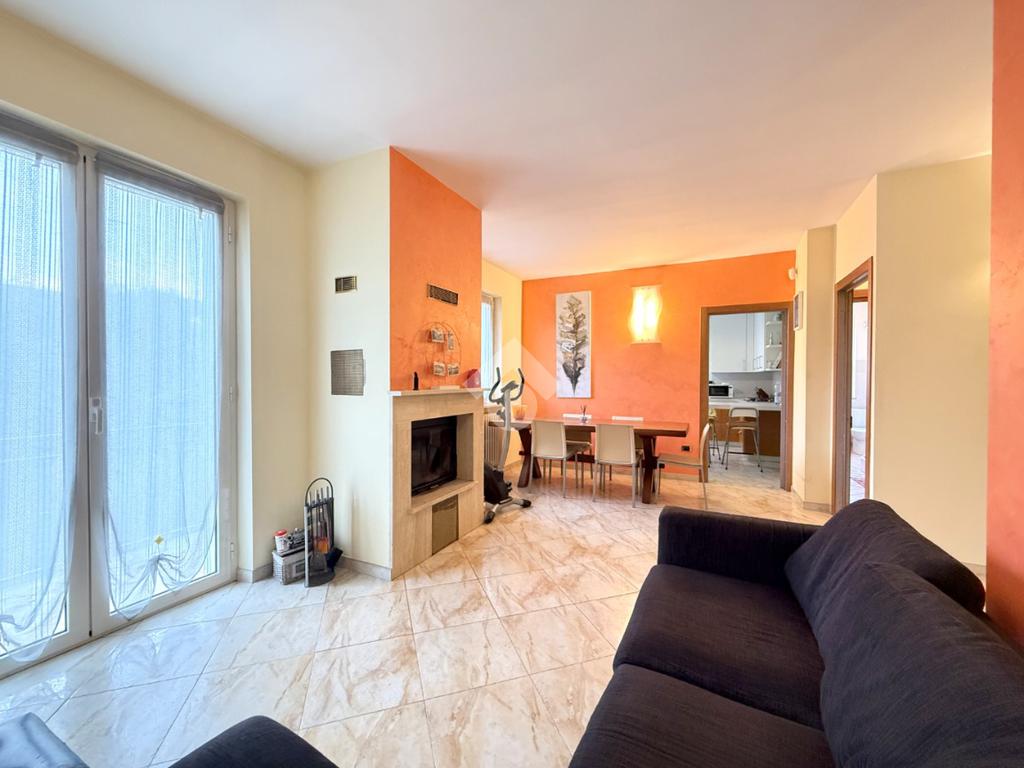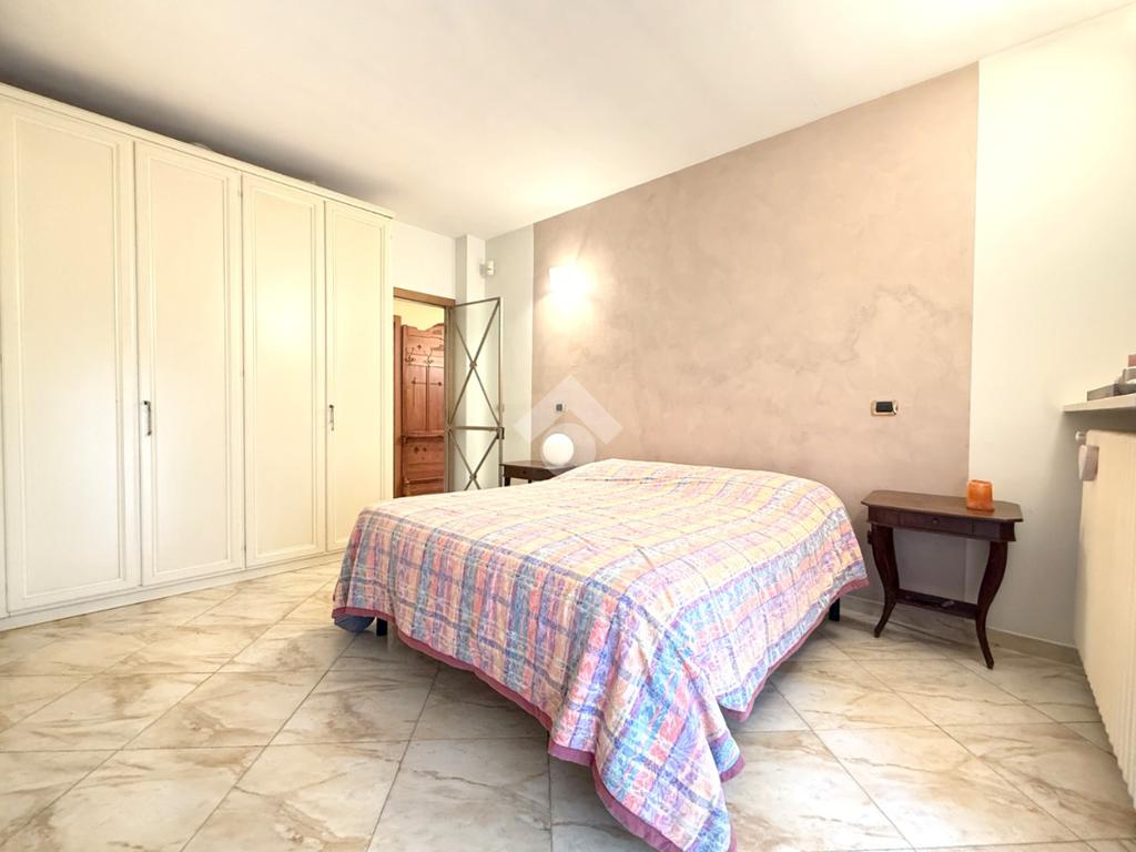 Al piano abitativo troviamo un ampio soggiorno con camino e terrazzo, la cucina abitabile e due camere da letto, di cui una matrimoniale con affaccio su un terrazzo coperto che porta al giardino. Il bagno spazioso ha una doccia multifunzione.