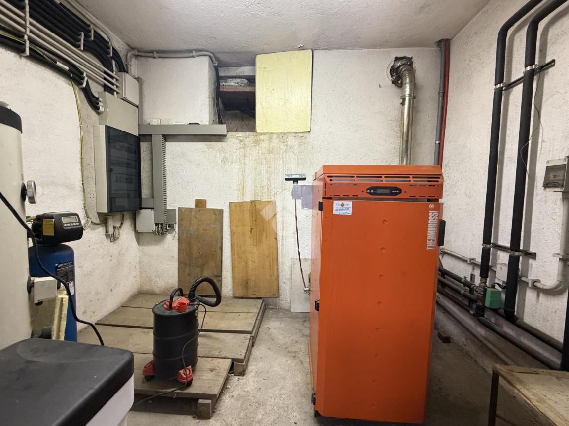 Al piano seminterrato troviamo l'ampio box auto di 52 mq, il locale caldaia che funziona a pellet e il locale lavanderia con bagno.
