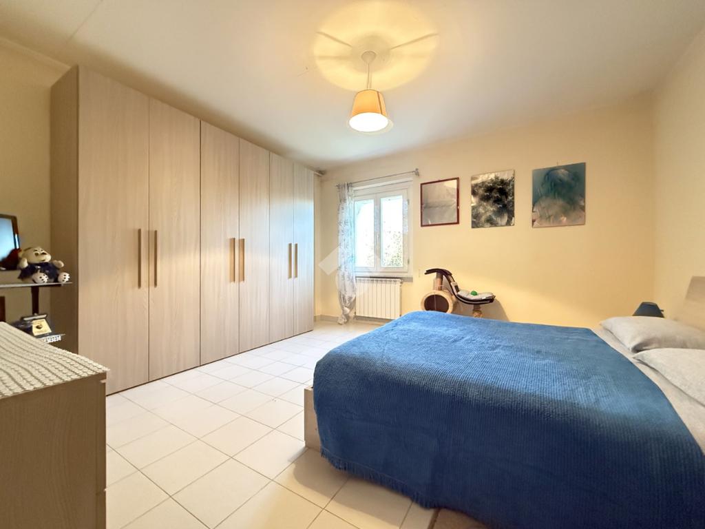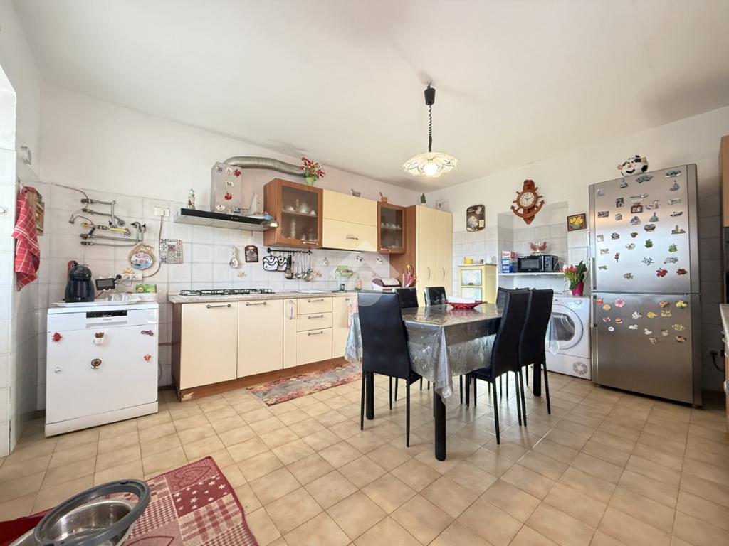 La casa si sviluppa su due livelli: al piano terra si trovano una cucina abitabile e un ampio soggiorno. Al piano primo sono presenti cinque camere, di cui quattro attualmente adibite a camere da letto e una ancora da rifinire, oltre a un bagno con vasca. Sul retro della casa, al piano terra e direttamente collegati al soggiorno, si trovano una cantina, , un bagno di servizio, un locale deposito e un comodo box auto. La casa è dotata di sistema di allarme.