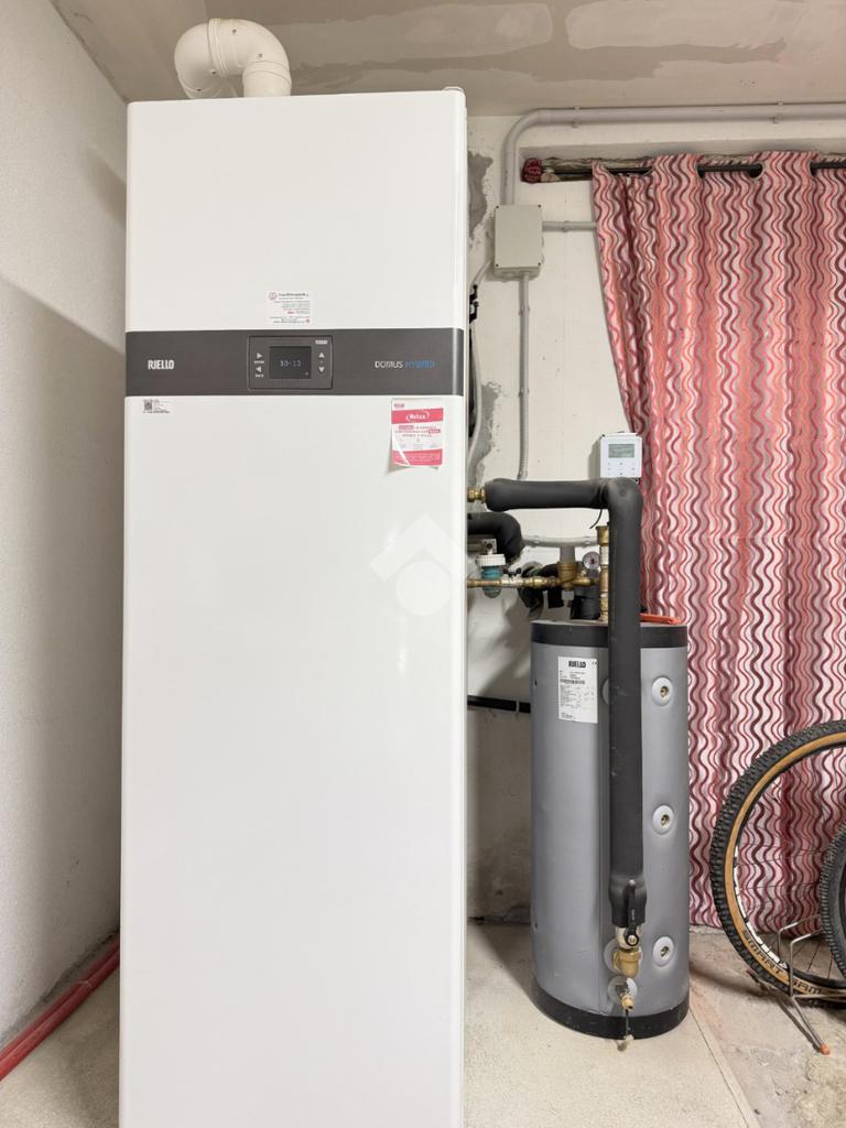 Il sistema di riscaldamento è ibrido, composto da pompa di calore aria-acqua e caldaia a condensazione, soluzione ideale per comfort abitativo e ottimizzazione dei consumi. Presente il gas metano di città.